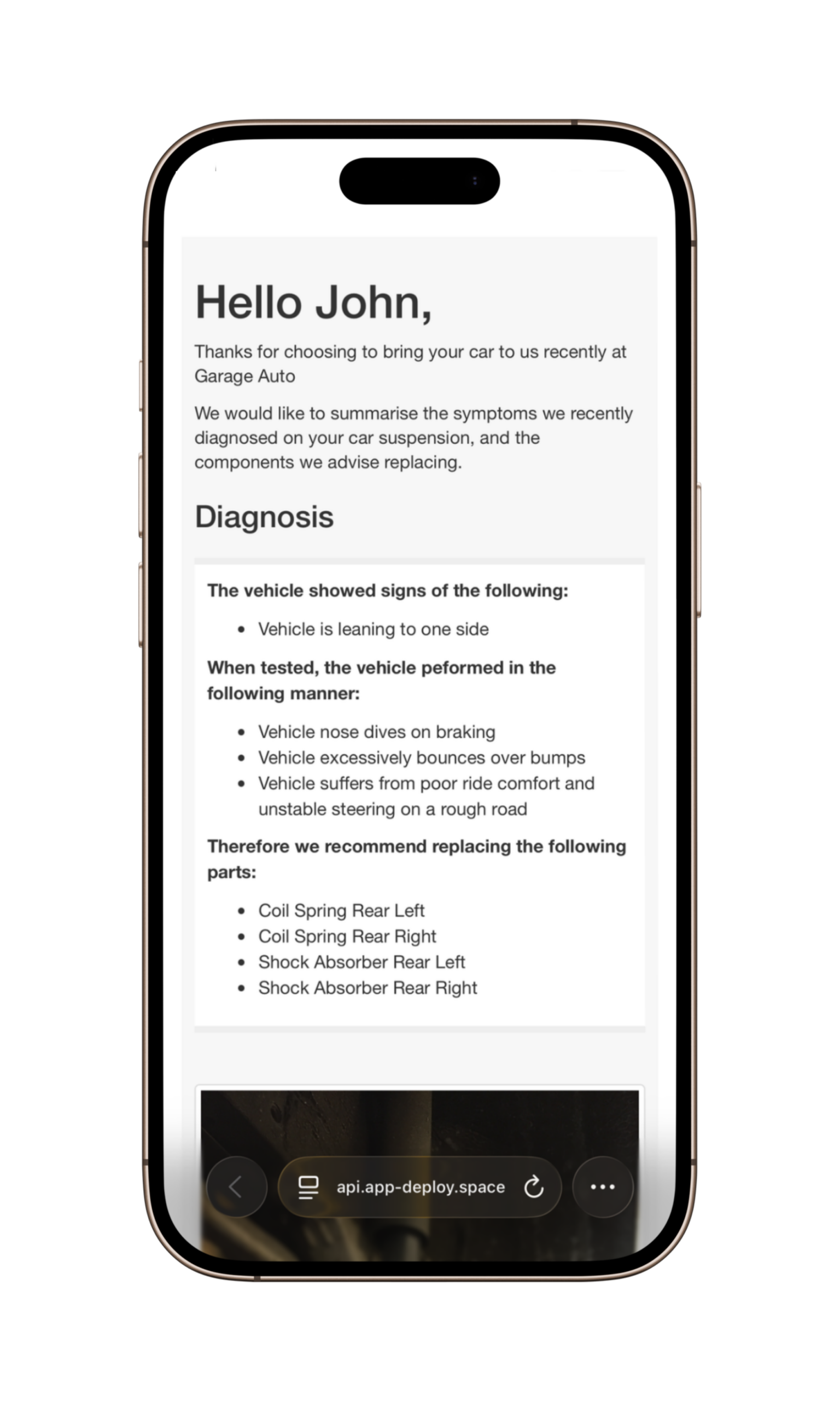 From the information provided, the App generates a personalised vehicle report that can be sent to the motorist for free.
