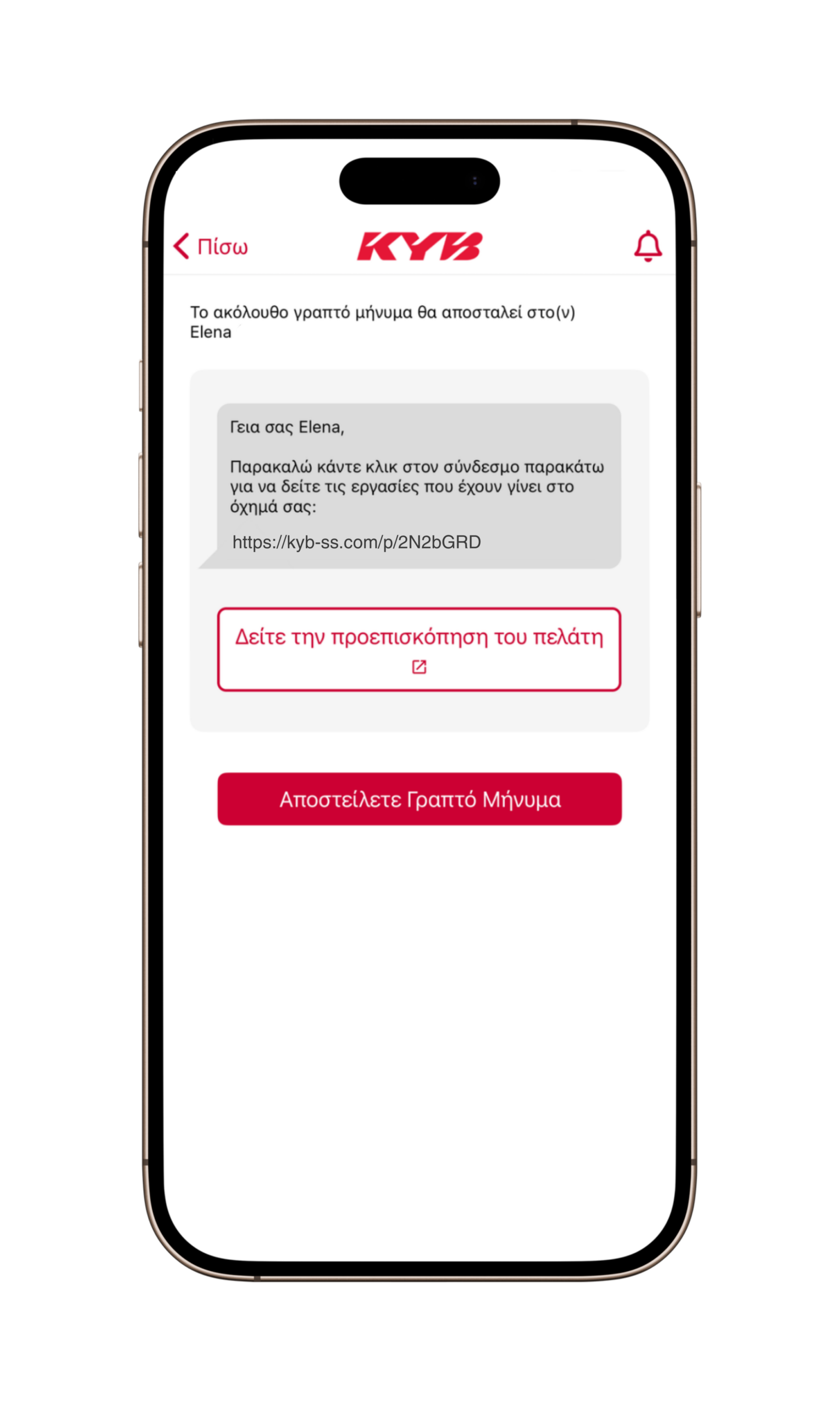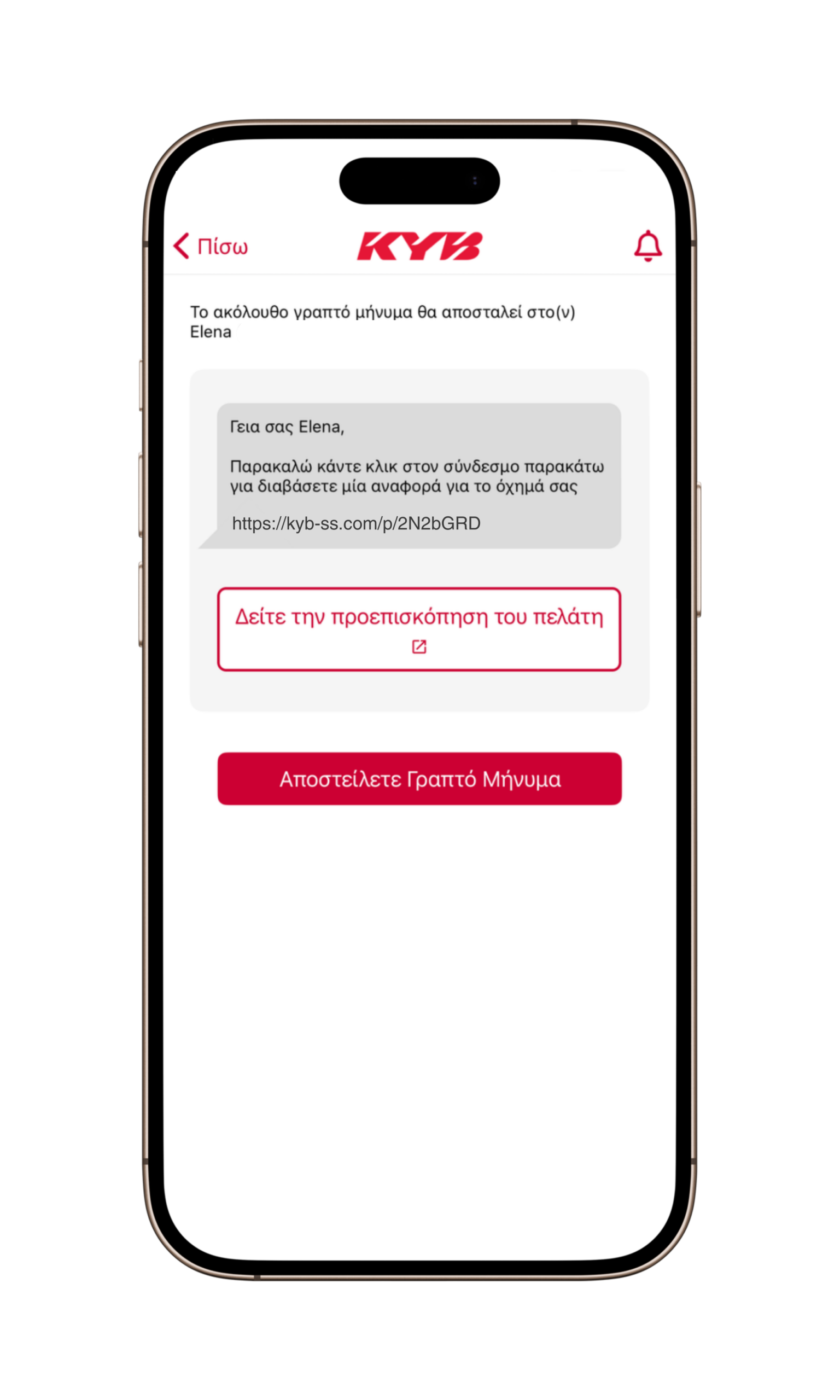 Η αναφορά έχει τη δυνατότητα να φέρει το λογότυπο του συνεργείου σας στην κορυφή και απευθύνεται προσωπικά στον οδηγό.