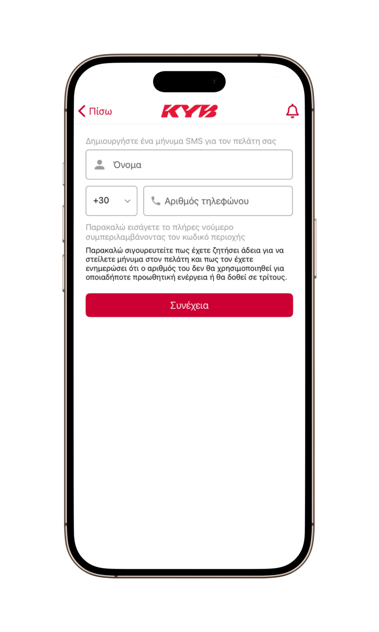 Επιλέγοντας την επιλογή «Υποστήριξη Πωλήσεων», θα μπορείτε να επικοινωνείτε με τον πελάτη σας μέσω δωρεάν SMS μηνύματος.