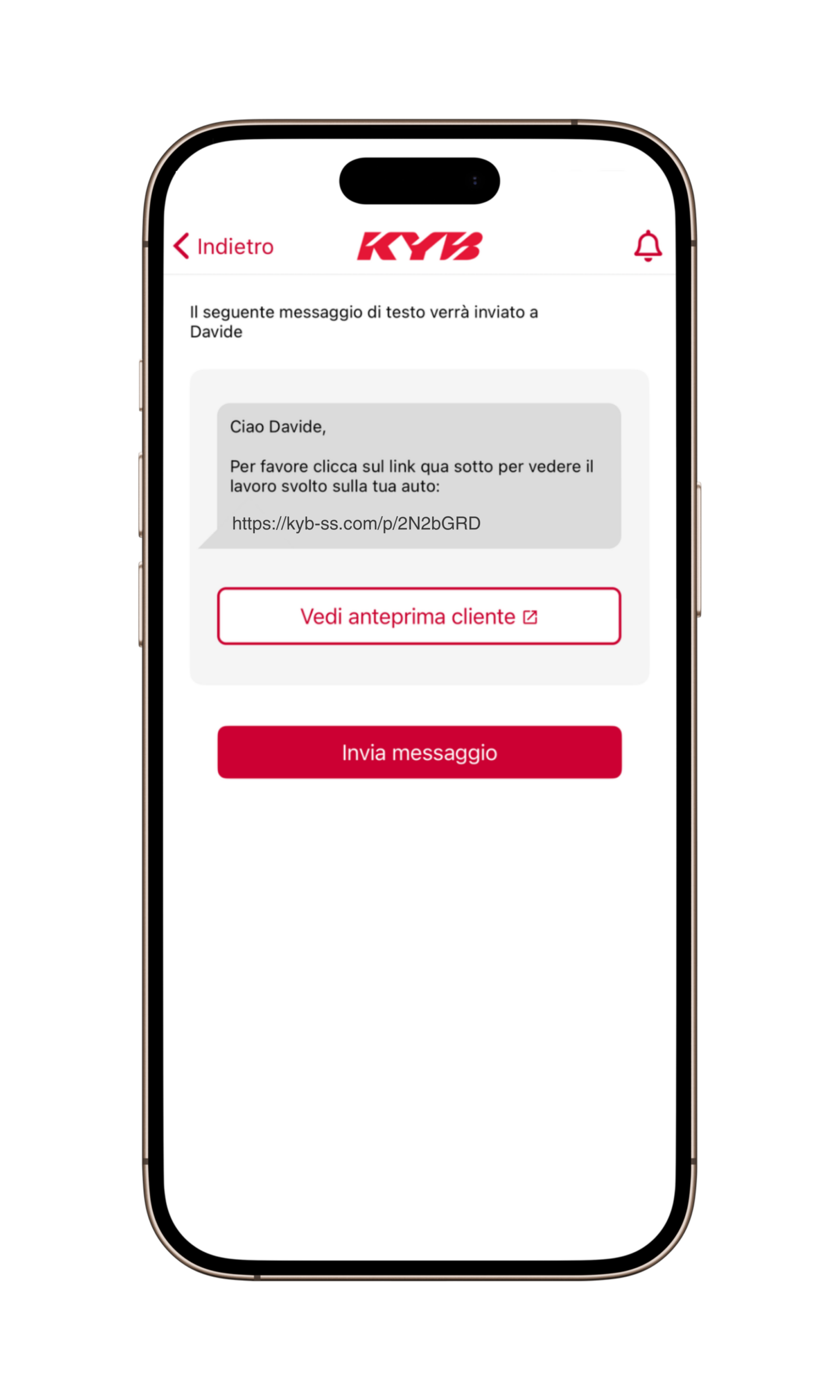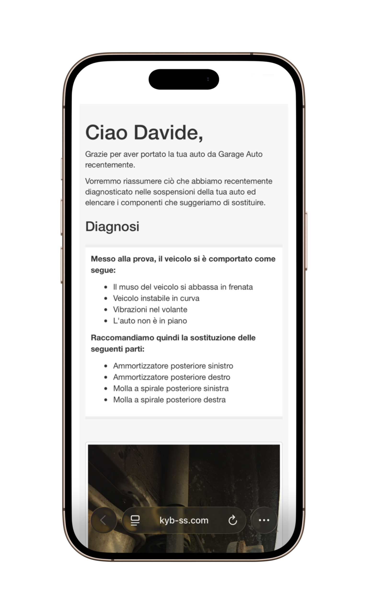 Il rapporto è completamente personalizzato con il logo dell’officina in alto ed è indirizzato personalmente all’automobilista.