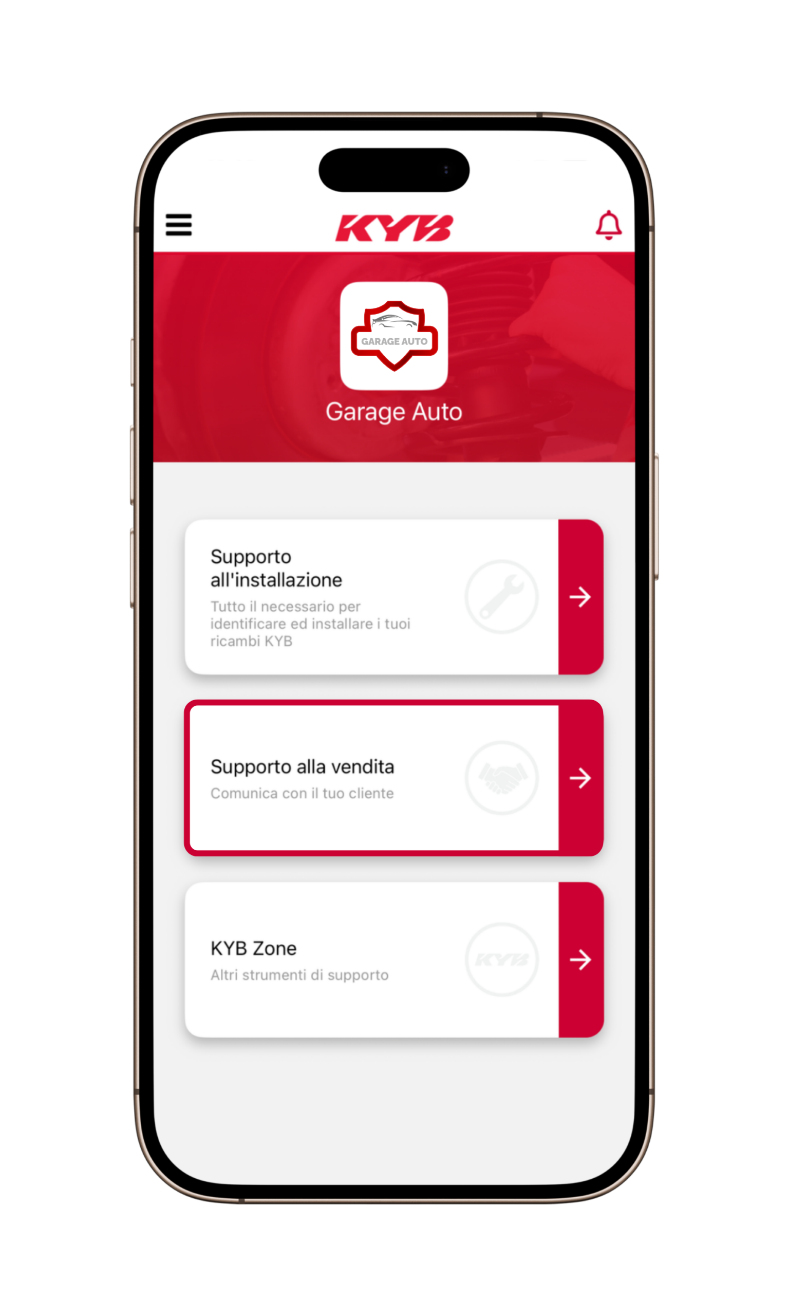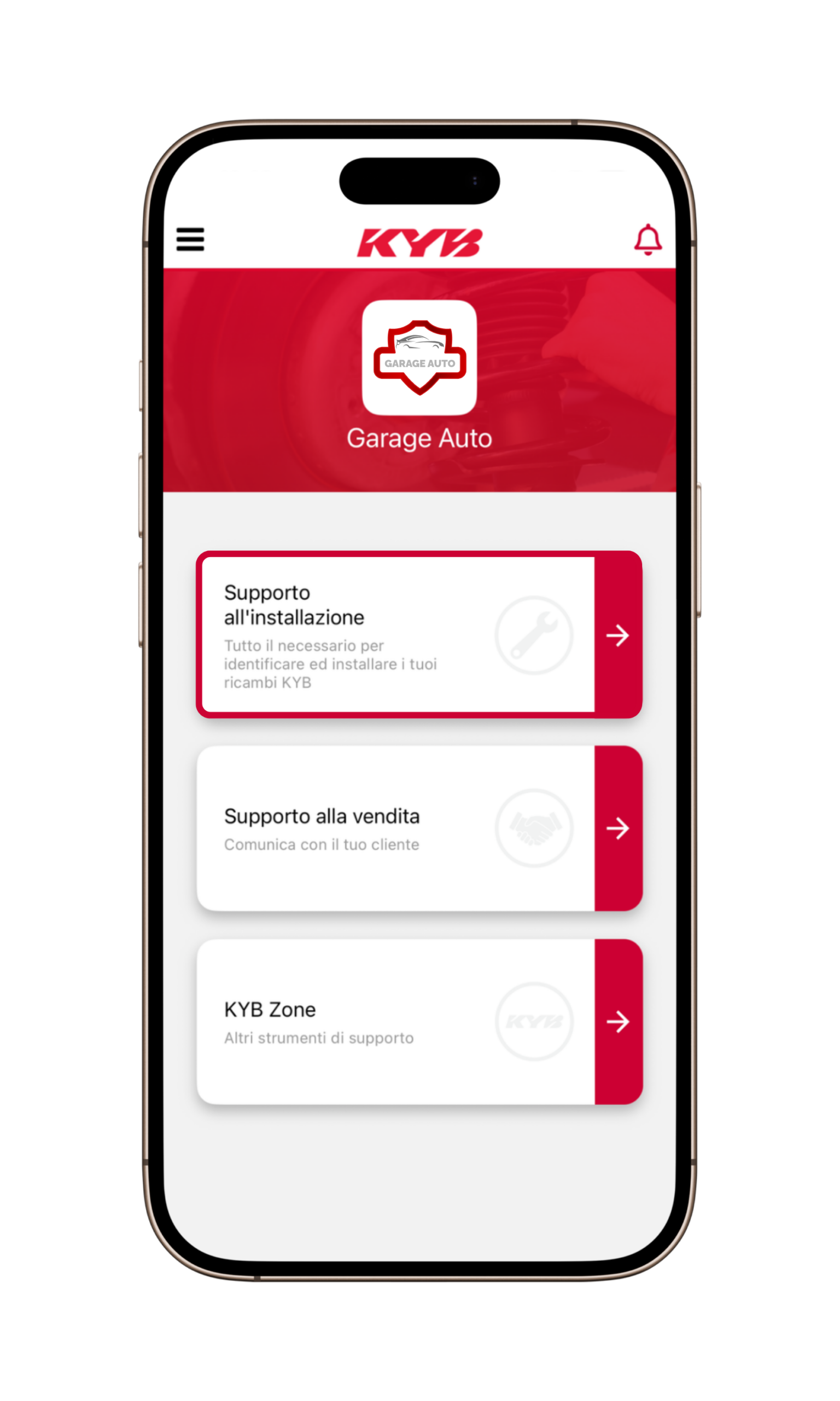 La App ora aiuta a trovare e installare i prodotti KYB , e supporta la comunicazione e la vendita.