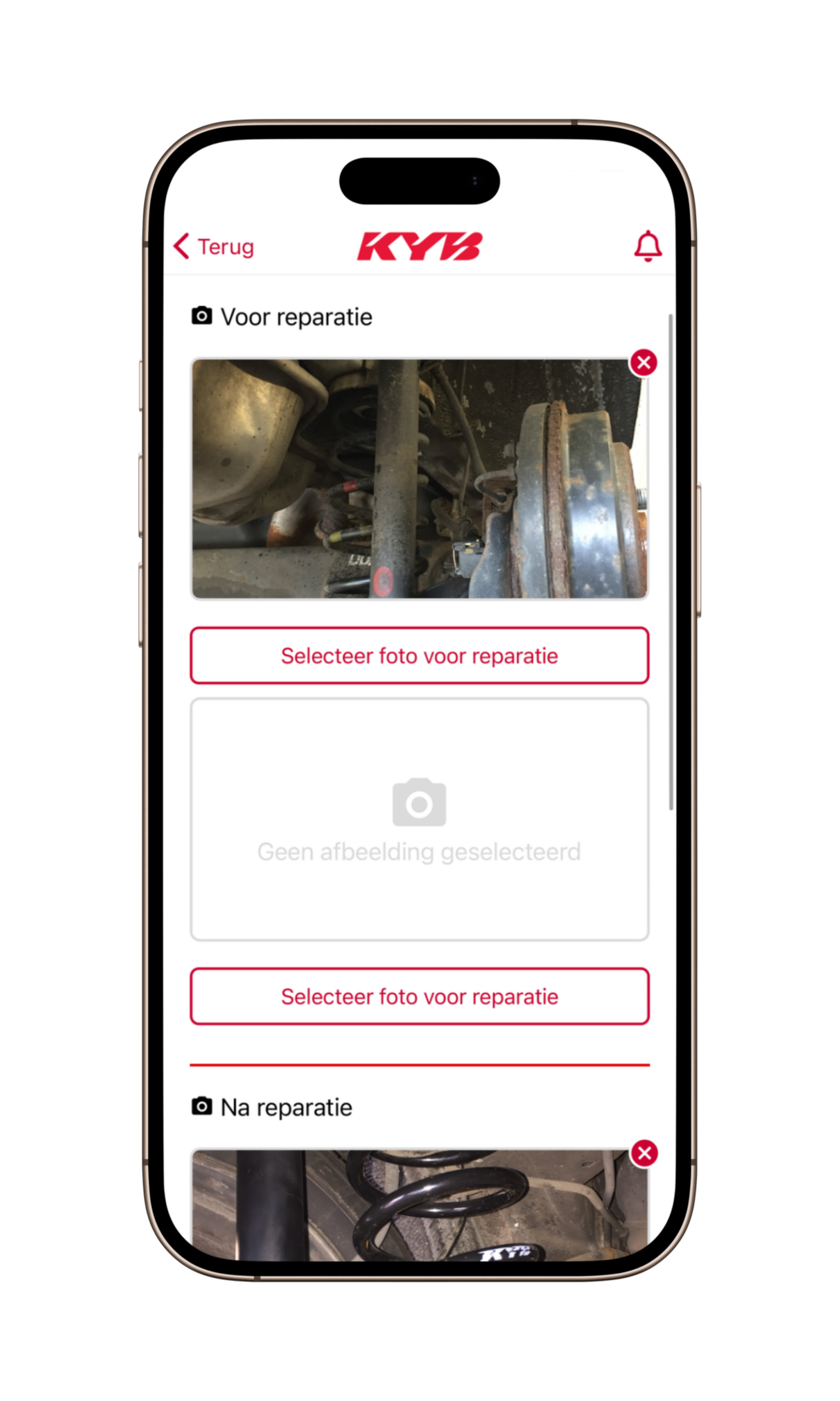 De technicus voegt daarna een ‘voor’- en ‘na’-foto van de reparatie toe.
