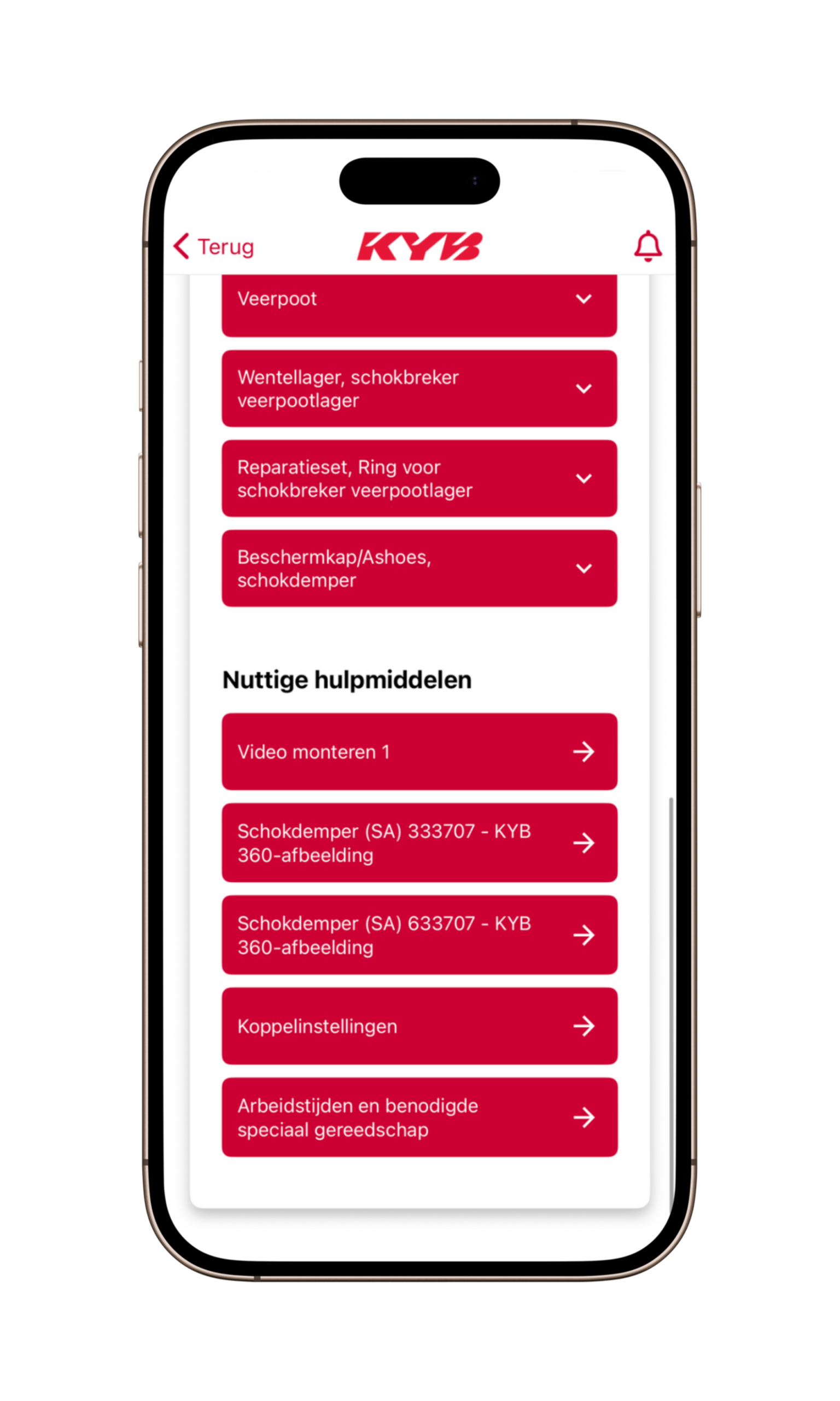 KYB Europe besloot dat technici het beste konden worden geholpen door het ontwikkelen van de App voor ophangingsproducten van KYB.