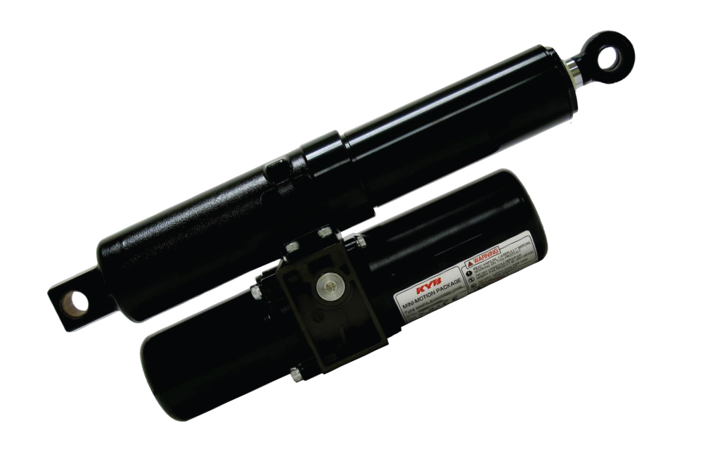 KYB Mini-Motion Package (MMP) to liniowy siłownik hydrauliczny ze zintegrowanym silnikiem elektrycznym wyposażony w pompę, zawór i cylinder.