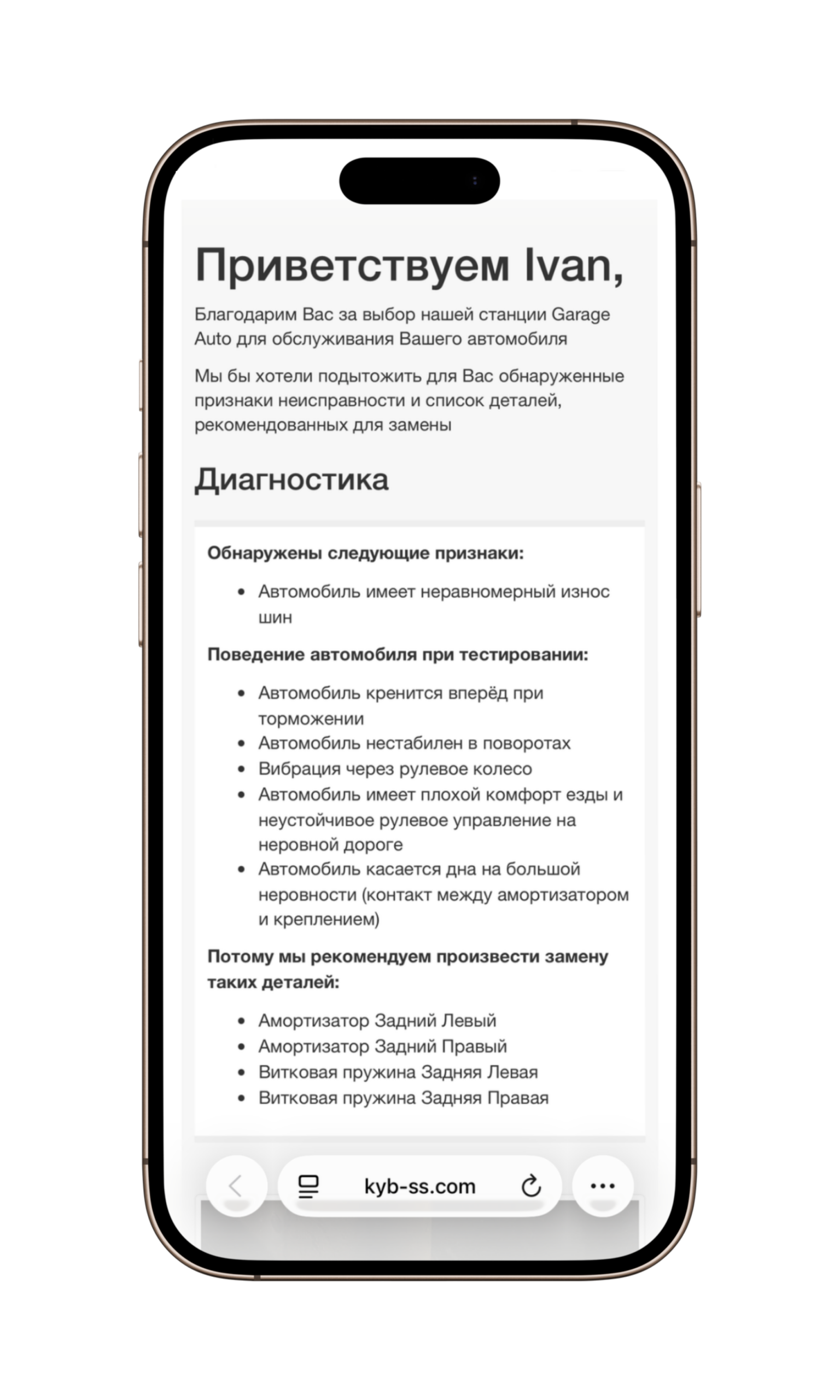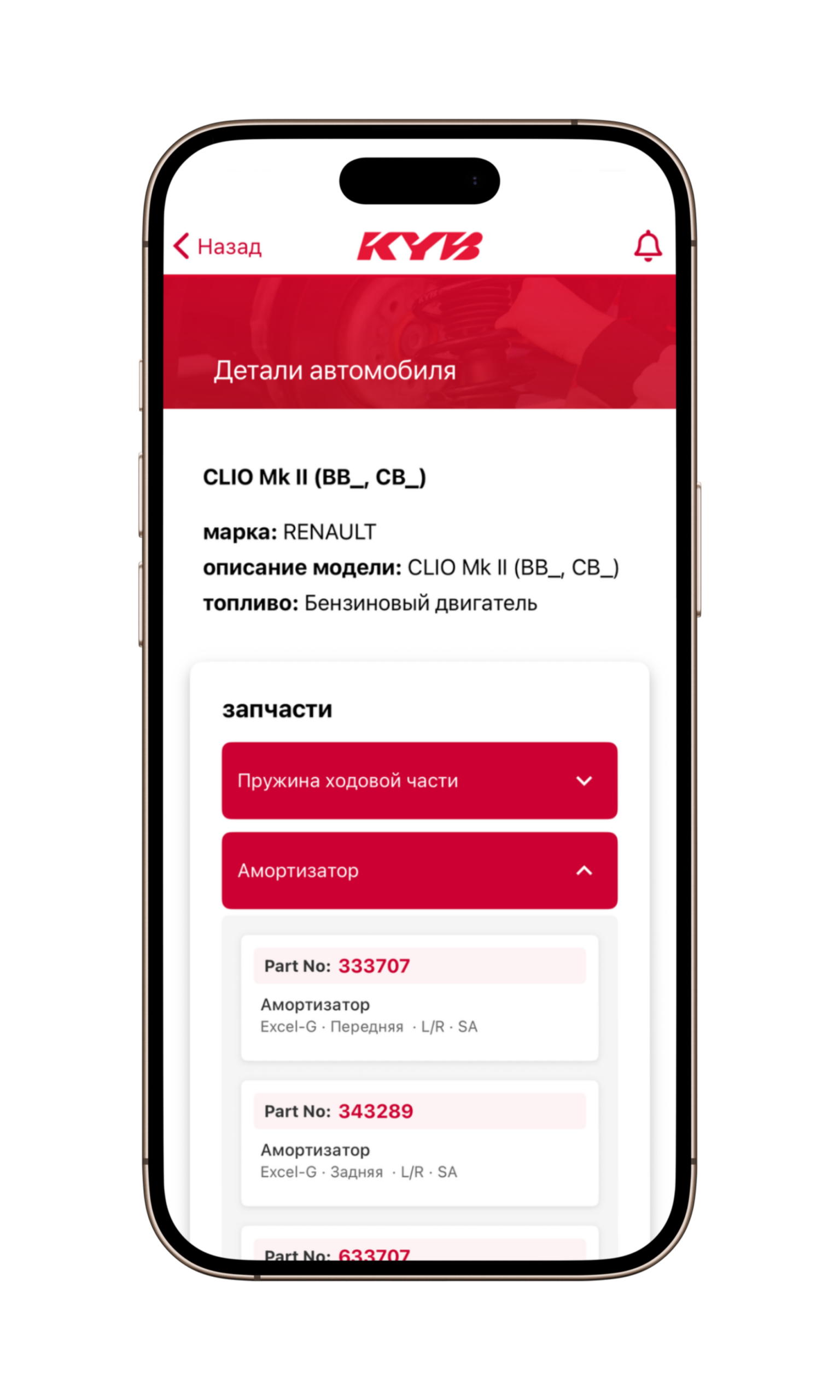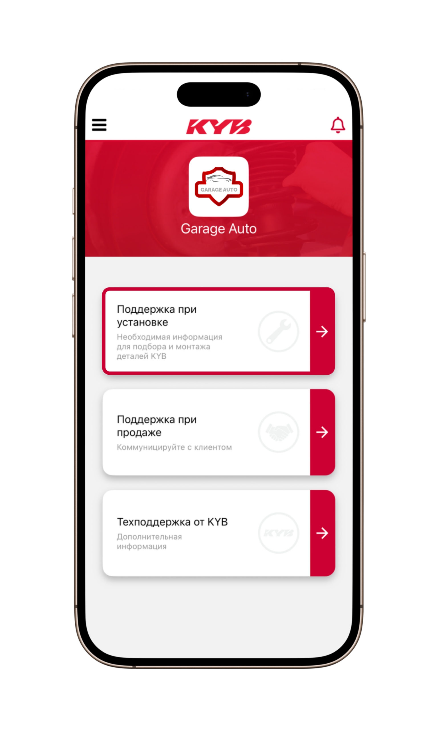 Приложение помогает не просто подбирать и устанавливать продукцию KYB, но и коммуницировать с клиентом, что способствует росту продаж.