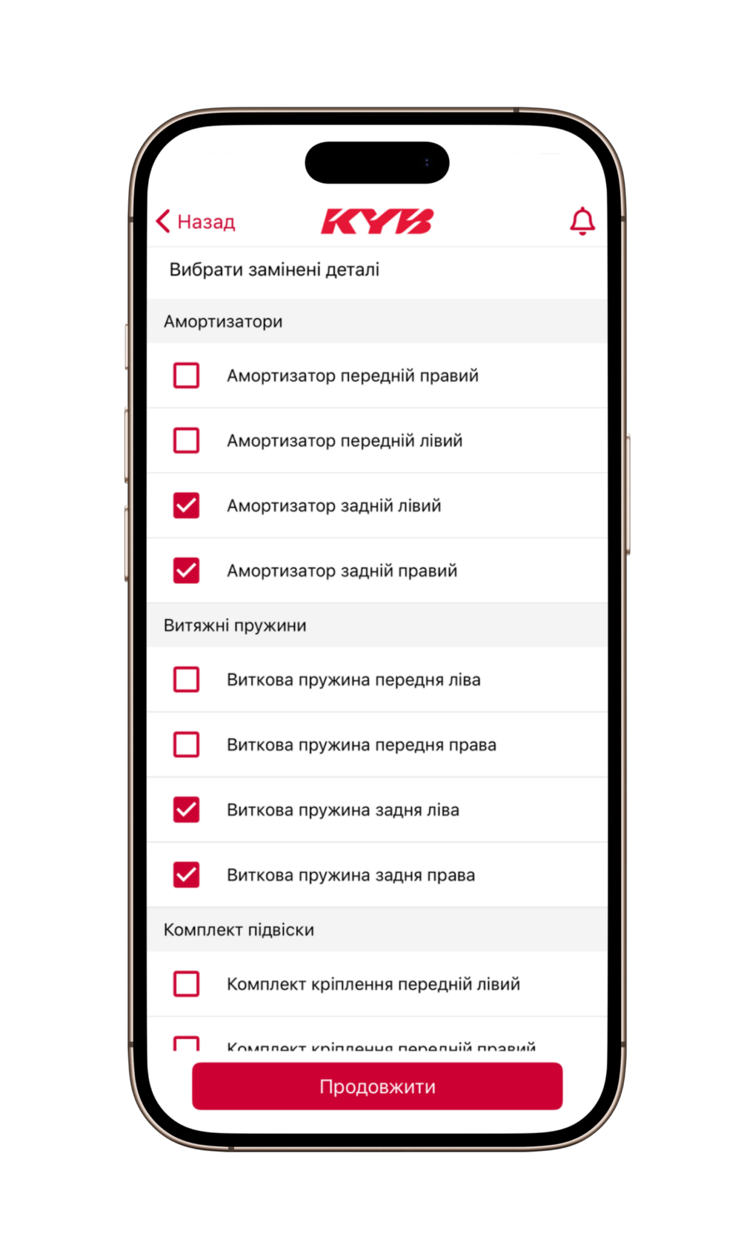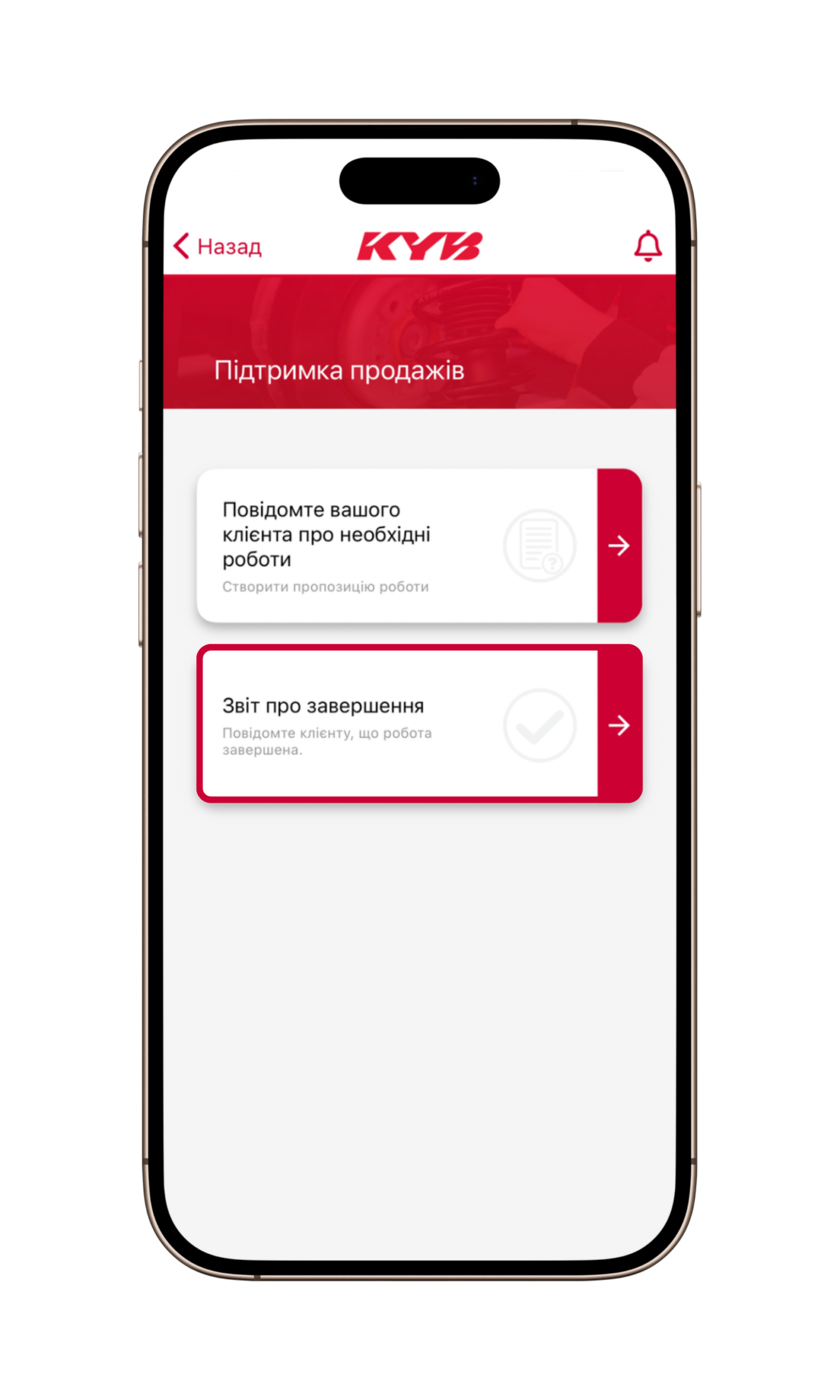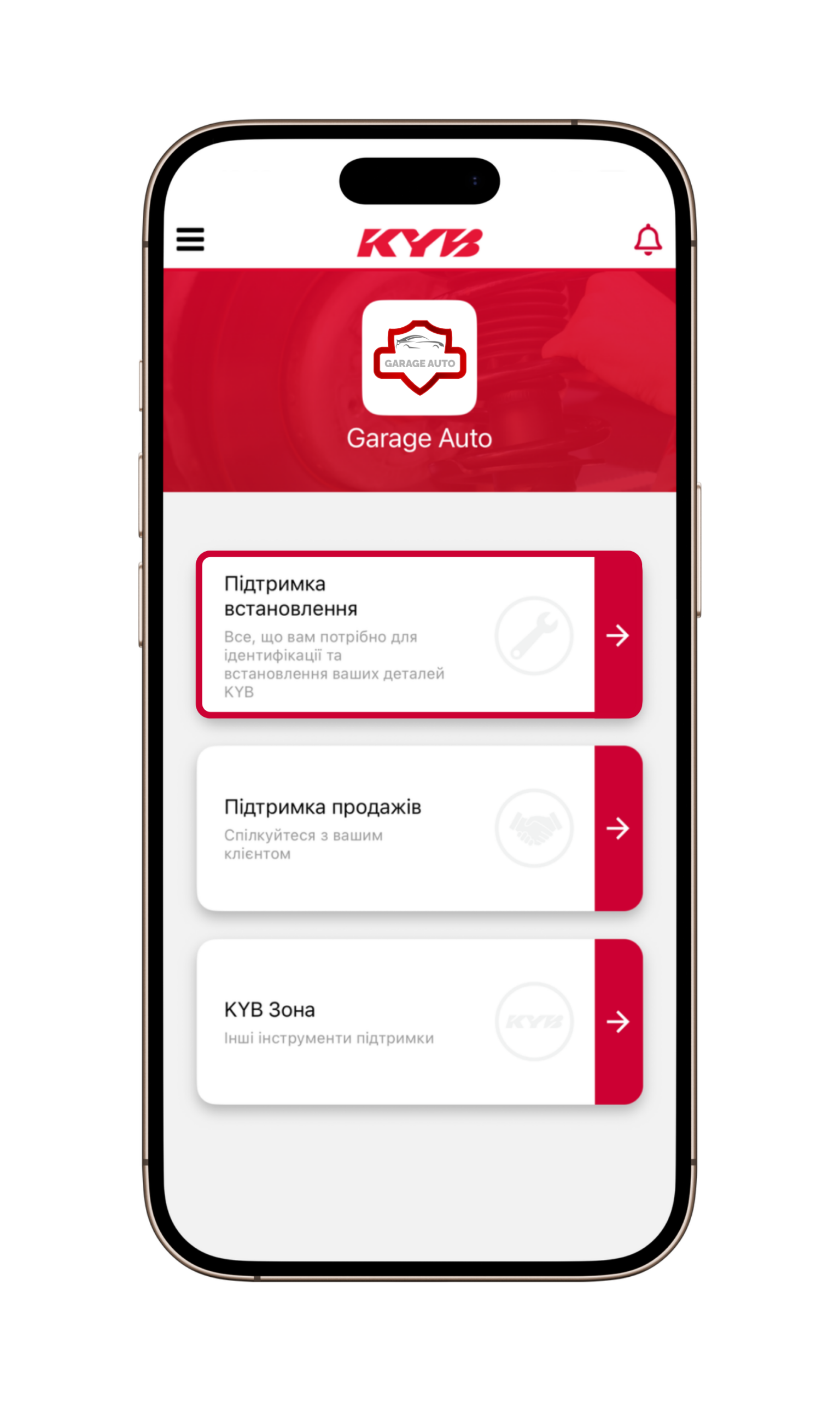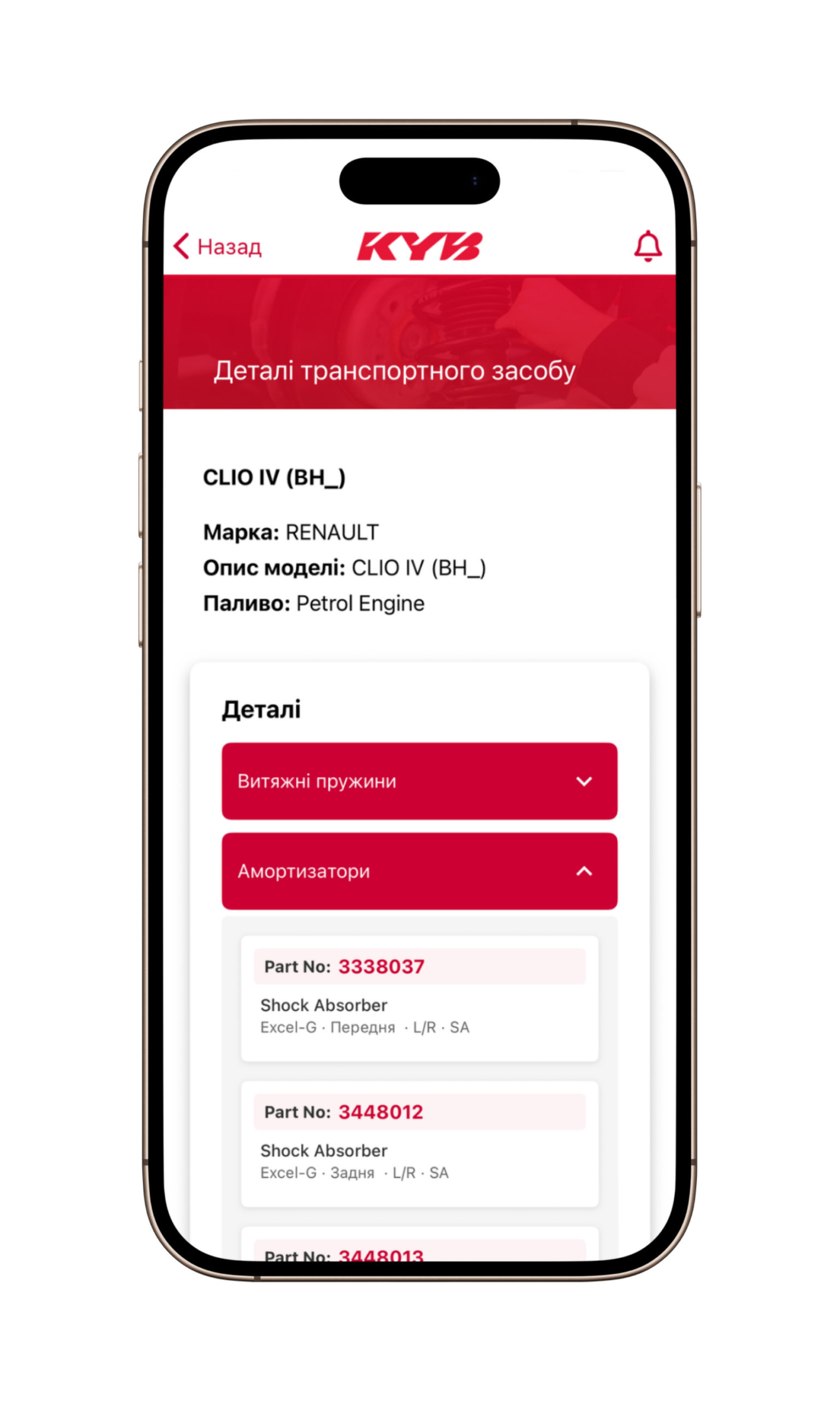 Наш застосунок допомагає не просто підбирати та встановлювати продукцію KYB, а й комунікувати з клієнтом, що сприяє зростанню продажів.