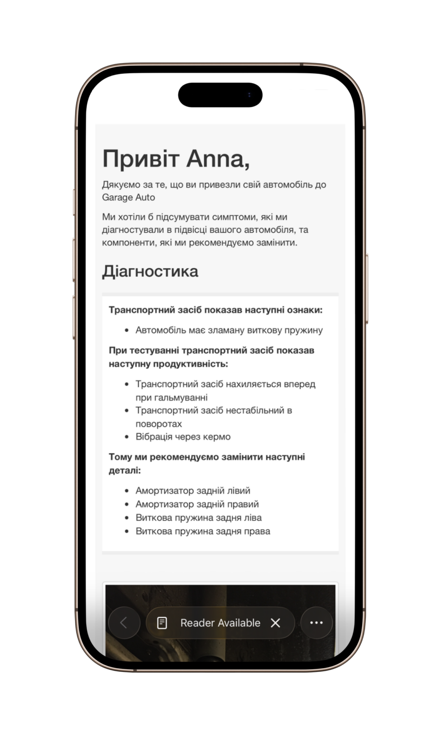 На підставі введеної інформації додаток створює персоналізований звіт, який готовий до безкоштовної відправки автовласнику.